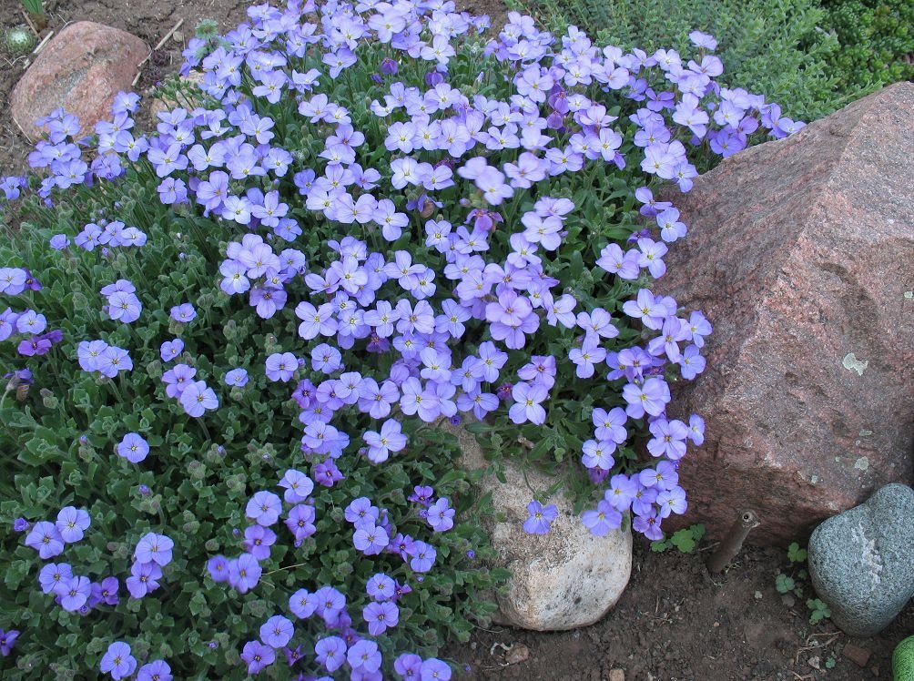 - Обриета Кембъл има големи люлякови цветя в различни нюанси. Те се появяват през май и продължават повече от месец.
