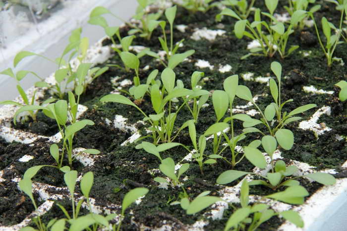 - Семената се засяват през март или април в специални контейнери, леко поръсени с пръст, поставени на доста светло и топло място, под филм. Почвата трябва да остане постоянно леко влажна.