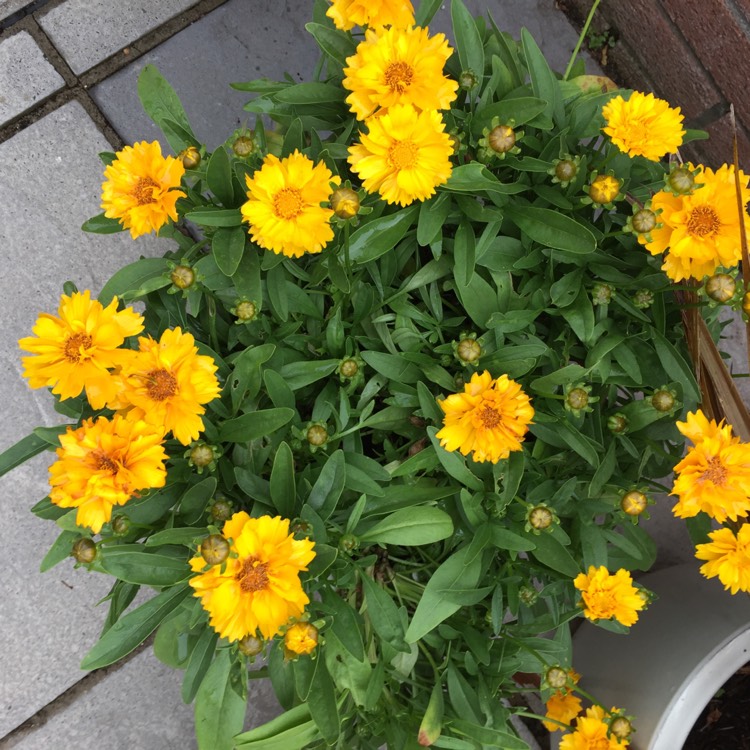 Друг хибрид, получен от Coreopsis grandiflora. Махровите съцветия образуват топчета с изключителна красота, цвят от златист до оранжев.