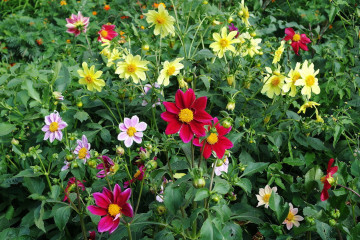 Сред сортовете далии има буйни гиганти и скромни миниатюрни растения, наподобяващи маргаритки ...