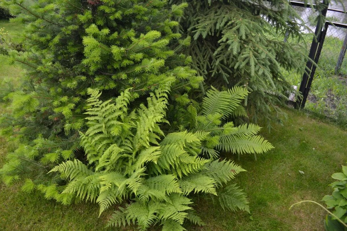 Папрат в страната или в парка обикновено се комбинира със следните декоративни растения: