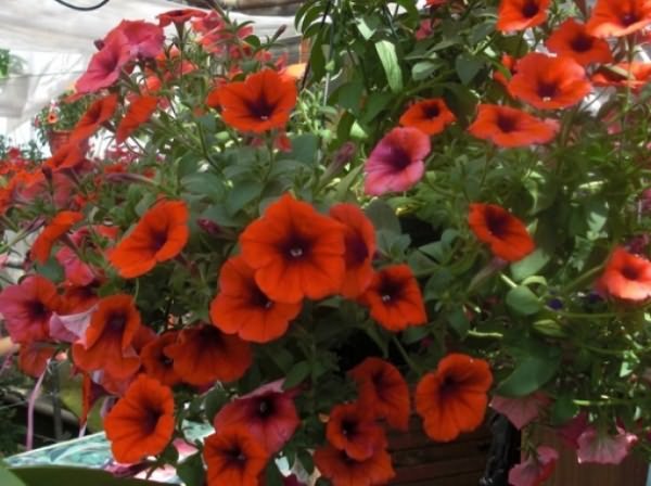 Съцветията на петунията са нежни. Дори поривите на силен вятър могат да ги повредят. Много е важно да носите висящи саксии на закрито по време на проливен дъжд. Ако не е възможно да се пренесат цветята, тогава след дъжда от храстите могат да се изскубят повредени съцветия, които развалят външния вид на растенията. След 3-4 дни на храстите ще се образуват нови пъпки. Цветята на петунията могат да бъдат боядисани в различни нюанси: