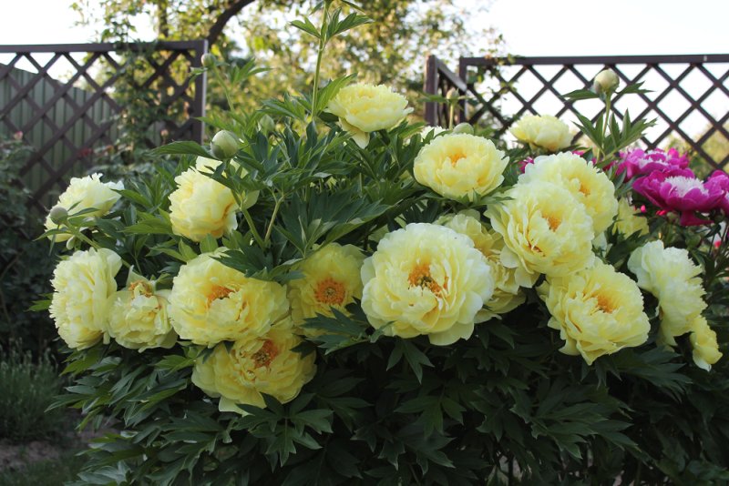 - Бордюри. Божур жълт Bartzella е засаден по пътеките като независимо гранично растение. Той отлично ограничава пространството в градината, разделя го на зони.