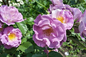 Буйните цветя изглеждат добре, когато са засадени сами на мястото, но опитни градинари създават чудесни комбинирани композиции с тяхна помощ. Декоративните широколистни растения са най-подходящи за това. Възрастни и обрасли храсти често се засаждат до градинските дървета - в тяхната компания те също изглеждат органично.