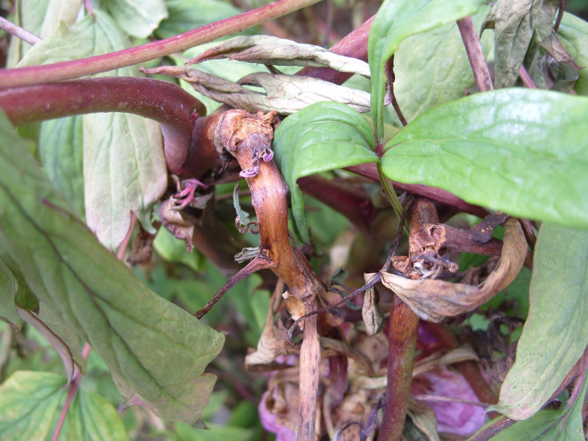 - Кореново гниене. Наблюдава се при излишък на влага или застой на вода близо до храста. Ако се открие заболяване, е необходимо да се трансплантира храстът на божур, като се отстранят изгнилите части на корена. Допълнително лечение със системни фунгициди.