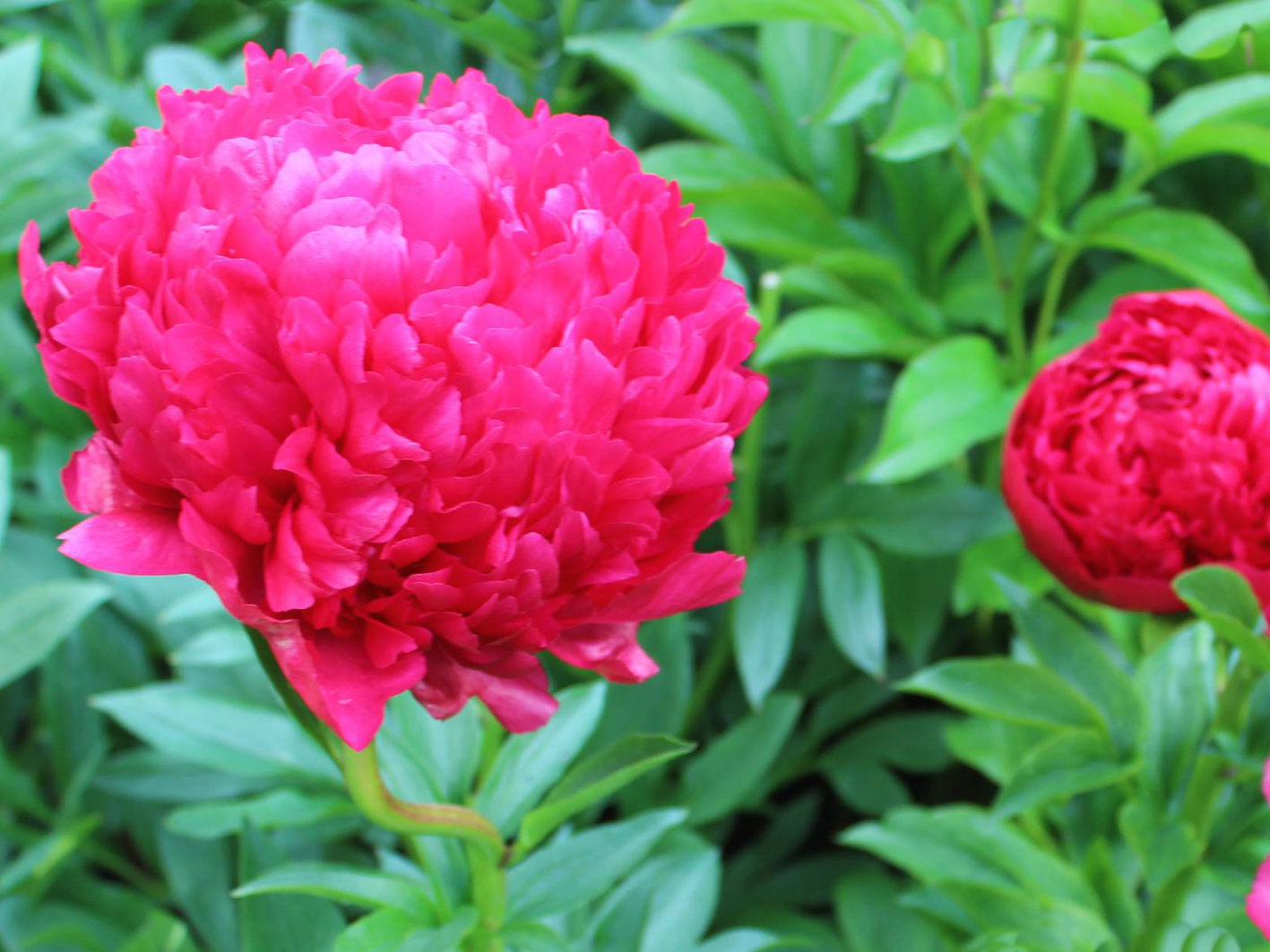- На фона на буйната зеленина на чемшир или иглолистни декоративни растения божурите ще изпъкнат благоприятно и ще съставят оригинална декоративна композиция в група.