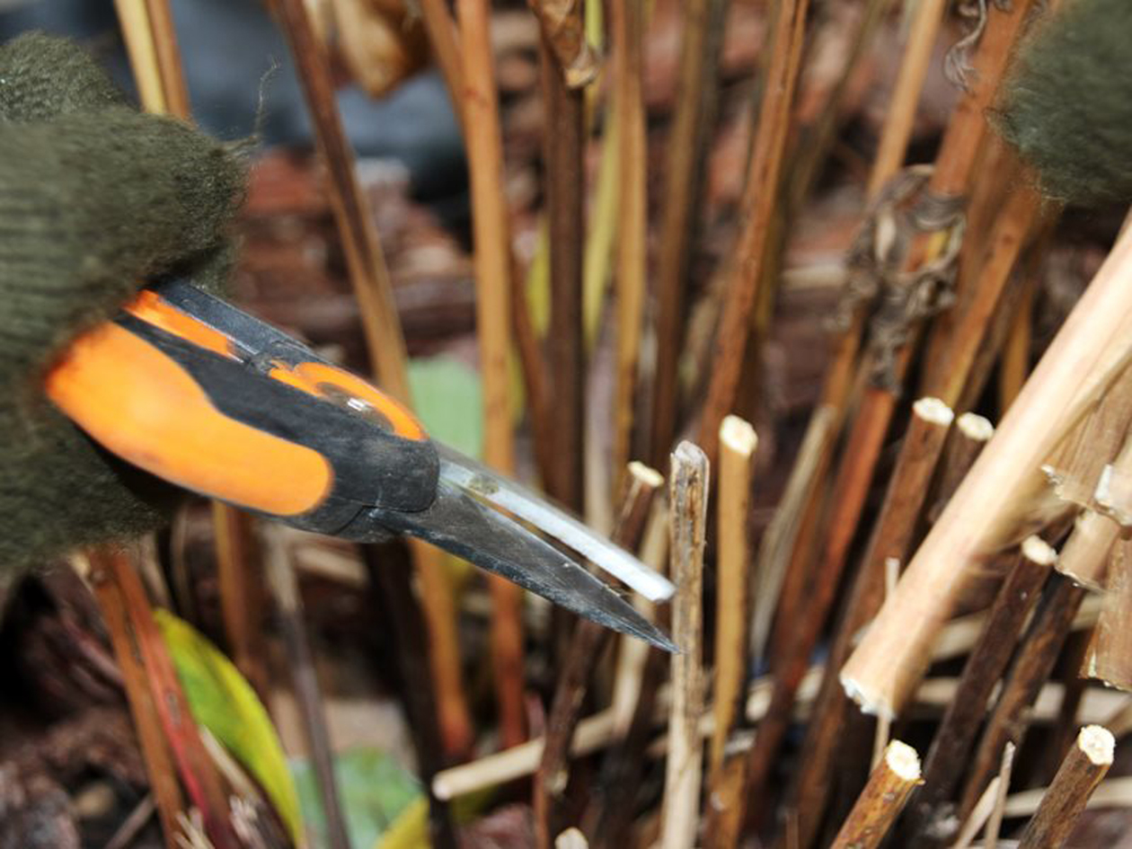 В началото на есента божурът започва да се подготвя за студеното време. За да направите това, отрежете всички издънки, като ги съкратите до 10-15 см. Изрязаните части могат да бъдат положени отгоре като превантивен подслон.