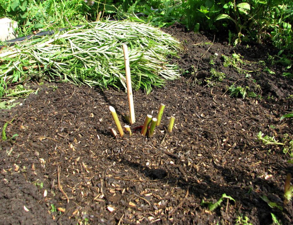 - Засадете резниците в земята, разстоянието между тях трябва да бъде най-малко 30 cm.
