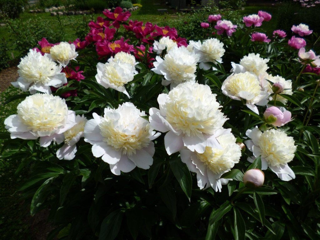 По време на периода на бутониране божурите се поливат, болните, счупените издънки се отрязват. В началото на пъпкуването, по време на периода на цъфтеж и след него се внасят минерални торове.