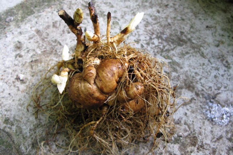 Деленка се изследва, отстраняват се повредени и изгнили корени, разфасовките и отчупените части на корена се напудрят с пепел, въглен, средство за стимулиране на растежа. Големите корени се изрязват на 1/3 от дължината.