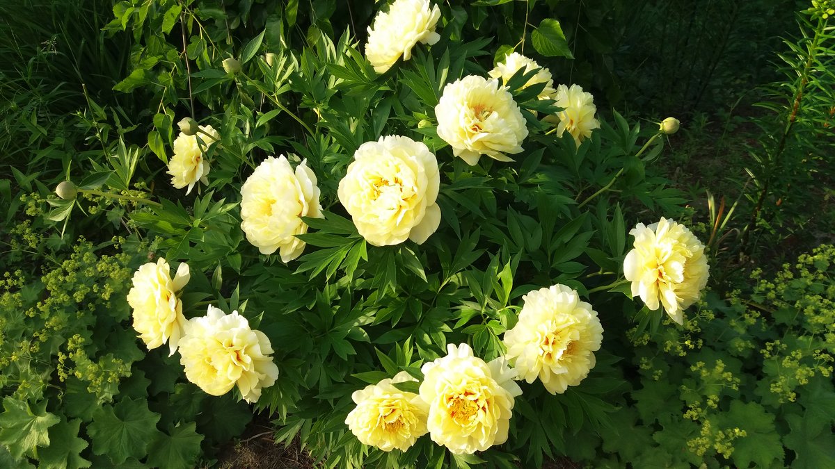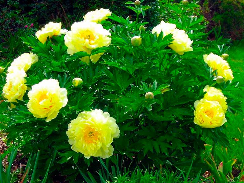 Тревистият жълт божур е един от най-разпространените сортове в Русия. Включва 7 представители и има деликатен аромат и естествен кремаво жълт цвят.