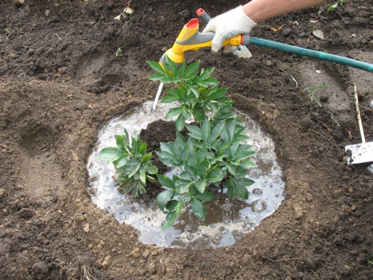 След засаждането цветето се полива умерено, като се избягва излишната влага. Ако божурите са засадени през есента и има силни дъждове, тогава не се изисква допълнителна влага. През пролетта и лятото божурите се поливат средно веднъж на 7-10 дни. Поливането обикновено завършва в края на август - началото на септември.