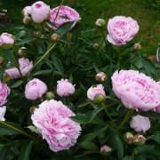- Барцела. Един от най-популярните сортове. Различава се в чаен нюанс с червени петна и огромни двойни цветя. Тревистият храст достига височина 100 см. Обикновено цъфти в началото на юли.