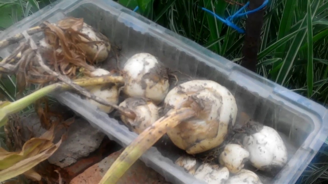 Растението се нуждае от грижи не само по време на засаждането, но и след това. Когато растението избледнее и загуби декоративния си ефект, листата започват да пожълтяват и отмират, тогава е необходимо да се изкопаят луковиците. Те се обелват, измиват се с топла вода. След това лукът се държи в слаб разтвор на калиев перманганат. Отстраняват се петна от гниене и други повреди. Мястото на среза се третира с фунгицид.
