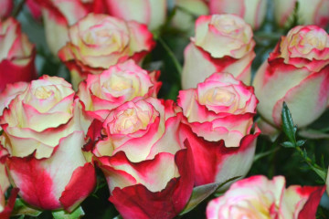 Принуждаването се случва в краищата на едногодишни издънки на групи от 1-3 цветя. Най-силният аромат има типични розови, ягодови и плодови нотки.