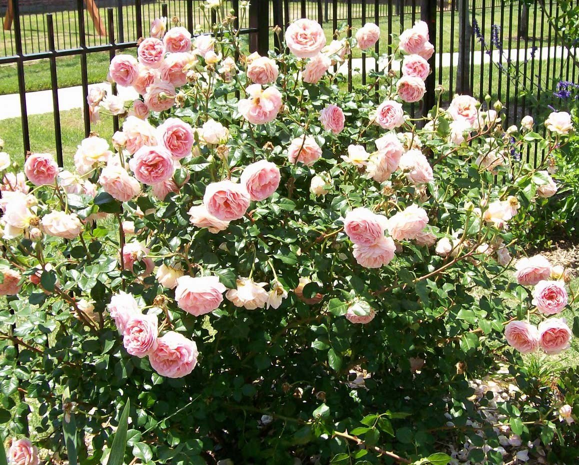 Сортът Abraham Derby често се нарича скраб, тъй като храстите са енергични. Но всъщност розата често се засажда на опорите, за да пусне камшиците си по решетката.