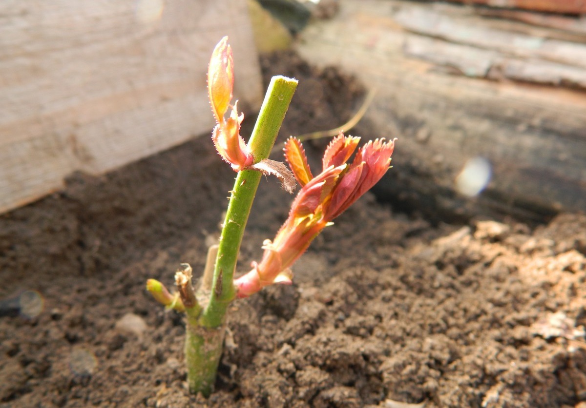 Когато подслонът се отстрани от розите през пролетта, е необходимо да се направи санитарна резитба. За да се получи компактен храст, издънките се съкращават с две трети.За да се образува висок и разперен храст, се отрязват само болни и повредени клони, а здравите се отглеждат и завързват за решетка.