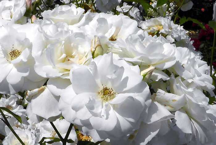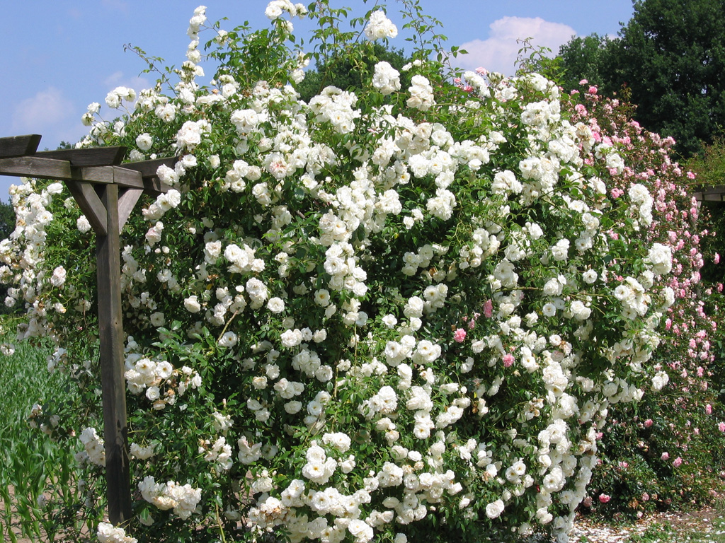 Катерещата се роза Climing Iceberg има много буйни красиви цветове.