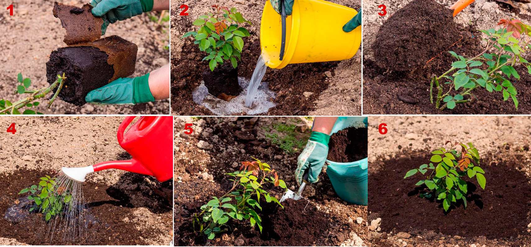 Корените на разсада се потапят във вода 3-5 часа преди засаждането, където се добавя стимулатор на растежа - по този начин розата бързо ще пусне корени на ново място.