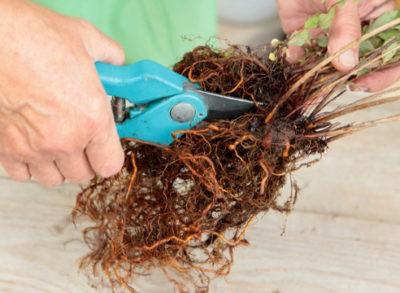 Изкопава се храст от майчиното растение и периферната част се отделя от него, или се разделя на две. Във всяка част трябва да останат корени и по едно издънка. На този издънок остават 3-4 пъпки, а останалата част се отрязва. Корените се навлажняват с глинена каша. Подготвените храсти се засаждат в почвата, поливат се и се сгушват.