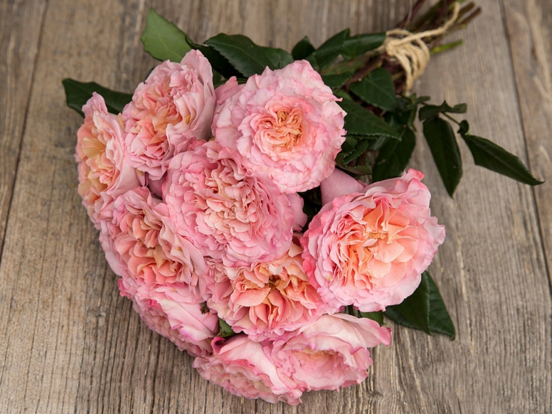Розовите съцветия са буйни, излъчват луксозен, примамлив аромат с плодови нотки.