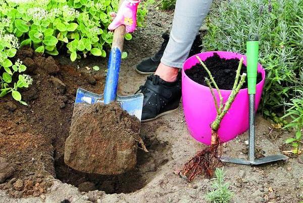 Този розов храст се засажда през пролетта в средата на април. Преди засаждането разсадът се потапя в разтвор на калиев перманганат за един ден, което ускорява растежа на корените. Освен това можете да използвате root. Прекалено дългите или осакатени корени се отстраняват с режещи ножици до здравата част на растението. Инструкции за това как да засадите разсад от роза: