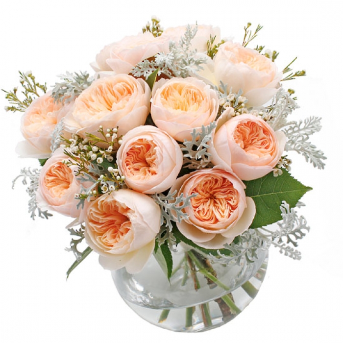 Жулиета е английска роза с бледо кайсиев оттенък. Нежната пъпка е изпълнена с венчелистчета, наподобяващи божур по форма. Ароматът на цветето е подобен на чаена роза.
