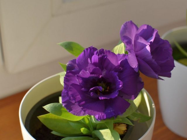 Нискорастящите сортове еустома са идеални за отглеждане на закрито. Растенията са компактни и растат на не повече от 20 см височина. Цветята имат среден диаметър 5 см. Цветята контрастират много добре на фона на компактен храст в саксия.