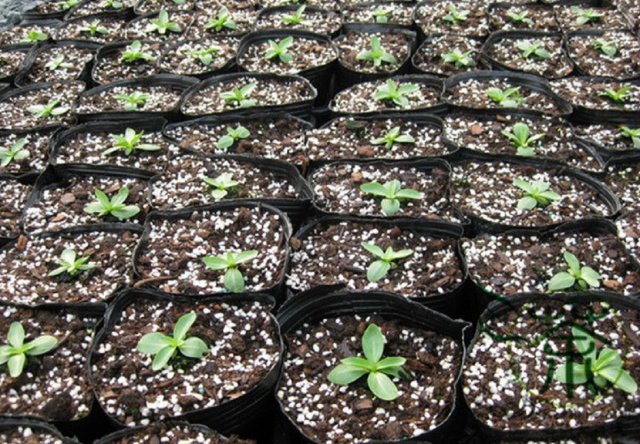Разсадът расте бавно. Гмуркането се извършва след появата на три двойки листа. Малките растения се поставят в отделни саксии, където продължават да растат.