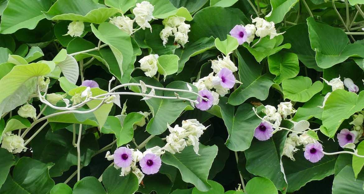 Цветето е представено от тънък, дървовиден, къдрав ствол със сърцевидни зелени махрови листа и тръбни цветя с различни цветове (от жълто до лилаво) с дължина около 5-7 см.