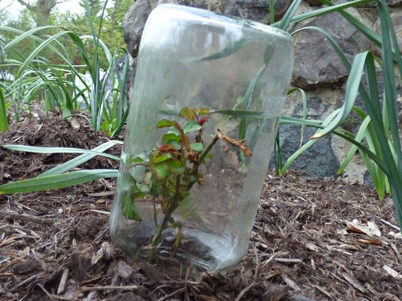 Най-добрият метод за вкореняване на розови резници се счита за засаждане в земята. Произвежда се в предварително подготвена почва (почвата за засаждане трябва да се смеси с пясък), резниците да се засаждат под ъгъл от 45 градуса и да се поливат добре. Покрийте всеки разсад отгоре със стъклен буркан или отрязана пластмасова бутилка. След месец резниците трябва да се вкоренят и да започнат да растат.