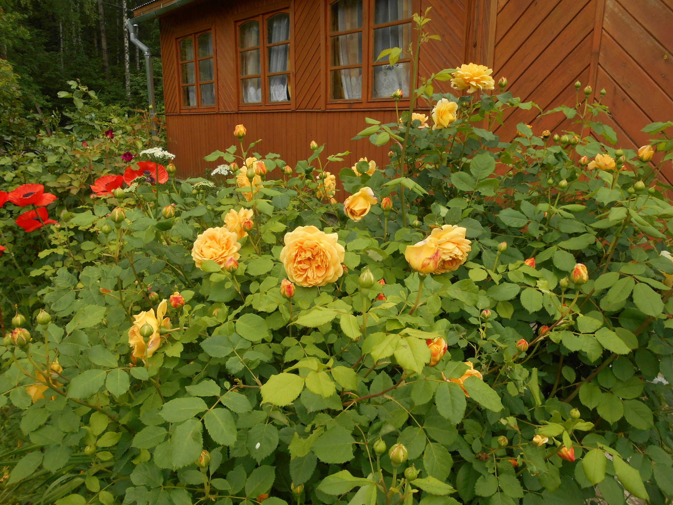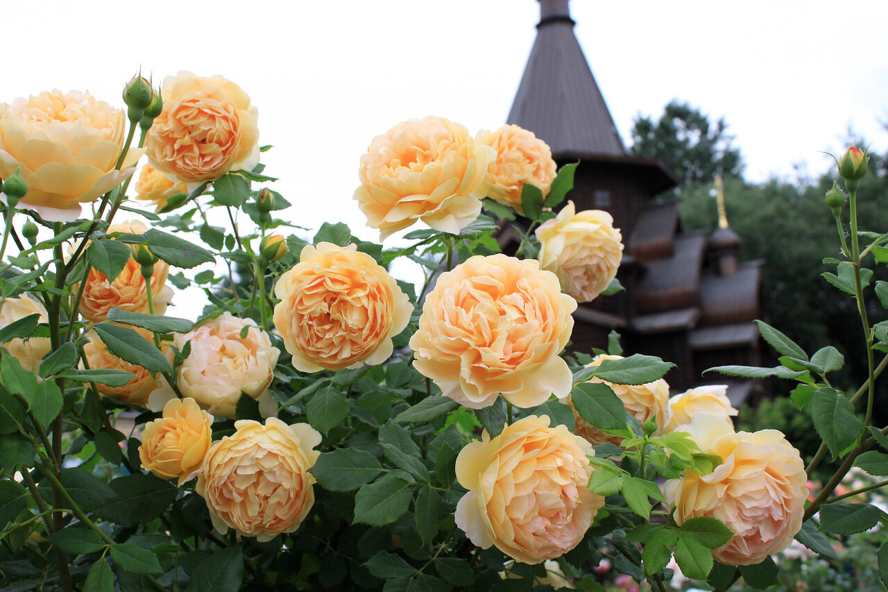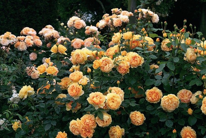 - плътно удвоени нежни съцветия с медножълт цвят - този цвят не е типичен за английските рози;