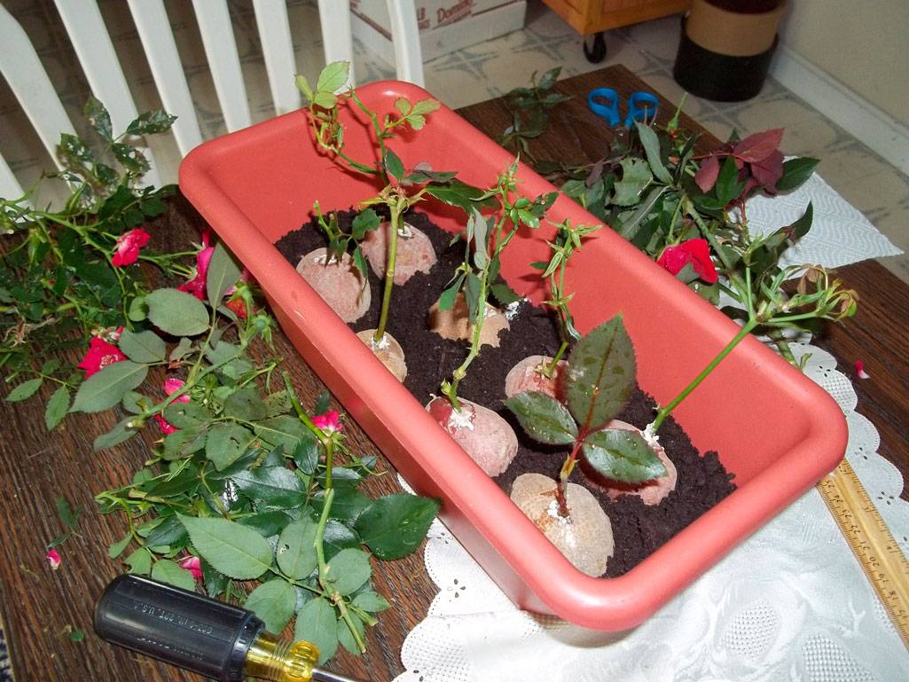 Вкореняване на резници от рози в картофи