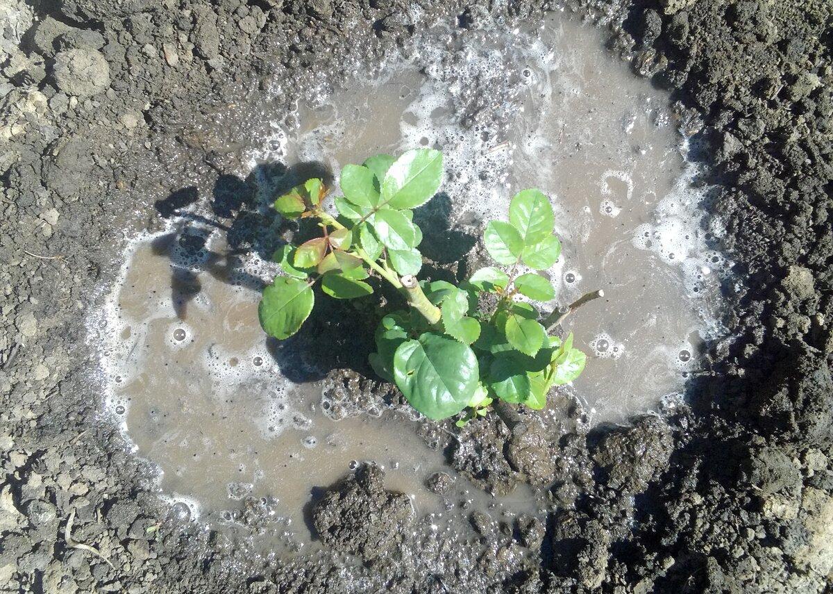 На първо място е необходимо да се създаде малка земна шахта около багажника на храста с вдлъбнатина в центъра. Това е за улесняване на поливането. Така водата няма да се разпространи в градината, но винаги ще остане на правилното място, активно абсорбирайки и лесно достигаща кореновата система, захранвайки храста.