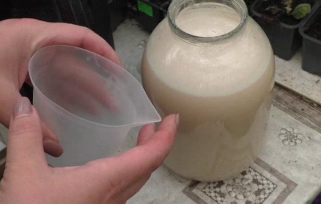 Поставете тревата в дълбок съд, напълнете я с вода, поставете контейнера на слънце и изчакайте 2-3 седмици. След ферментацията тревата се изправя върху компост, към водния състав се добавят хумус, дрожди на прах и 10 литра вода. Добре смесен състав се полива с розови храсти в корена.