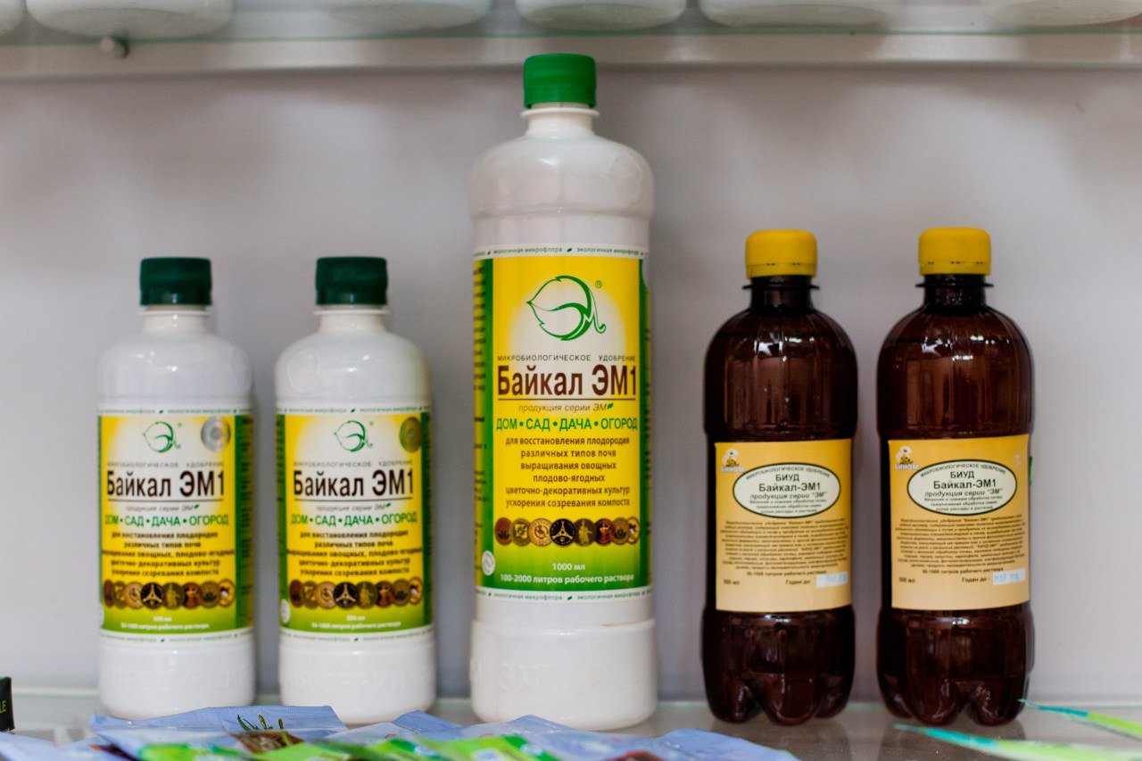 - "Байкал ЕМ-1". Освен гъбички с дрожди, препаратът съдържа млечна киселина, азотфиксираща, фотосинтетична микрофлора, която омекотява ефекта на фитопатогените.