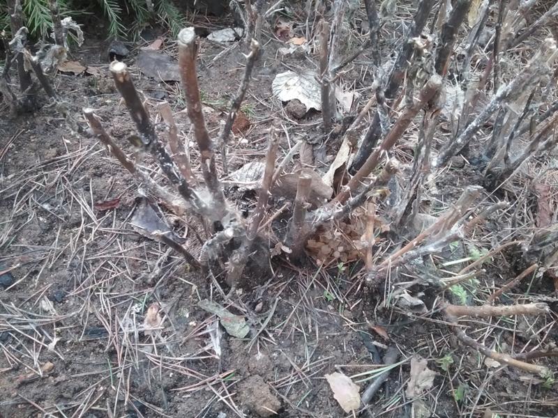 - Съберете всички стари листа от храстите и земята. Огледайте храста и отстранете изсушените, счупени, повредени от замръзване стъбла със секатор.