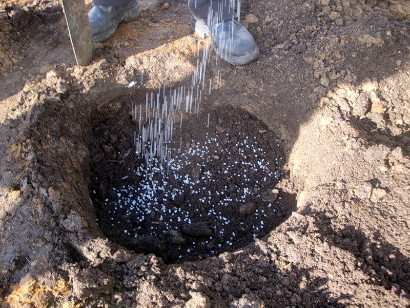 - На дъното на ямата за засаждане се изсипва слой експандирана глина (или друг дренаж) с дебелина 10 см.