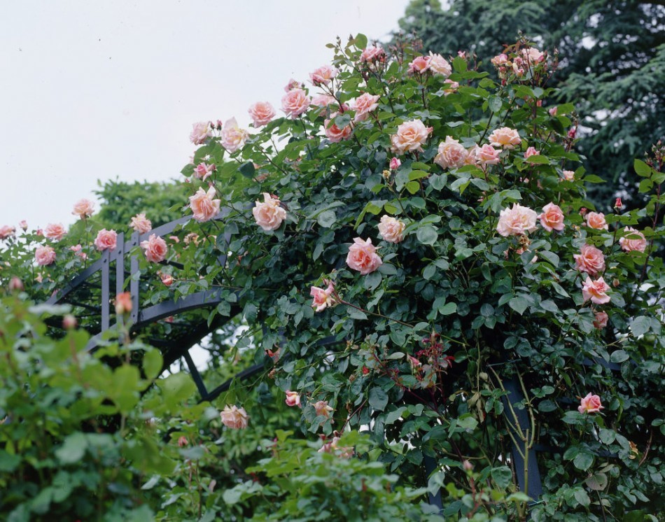 Катереща се роза от английска селекция под имената Compesion или Belle de London е прекрасна украса на градината. Неговите двойни цветя от сянка на сьомга с диаметър до 15 см цъфтят върху храсти с височина до 3 м.