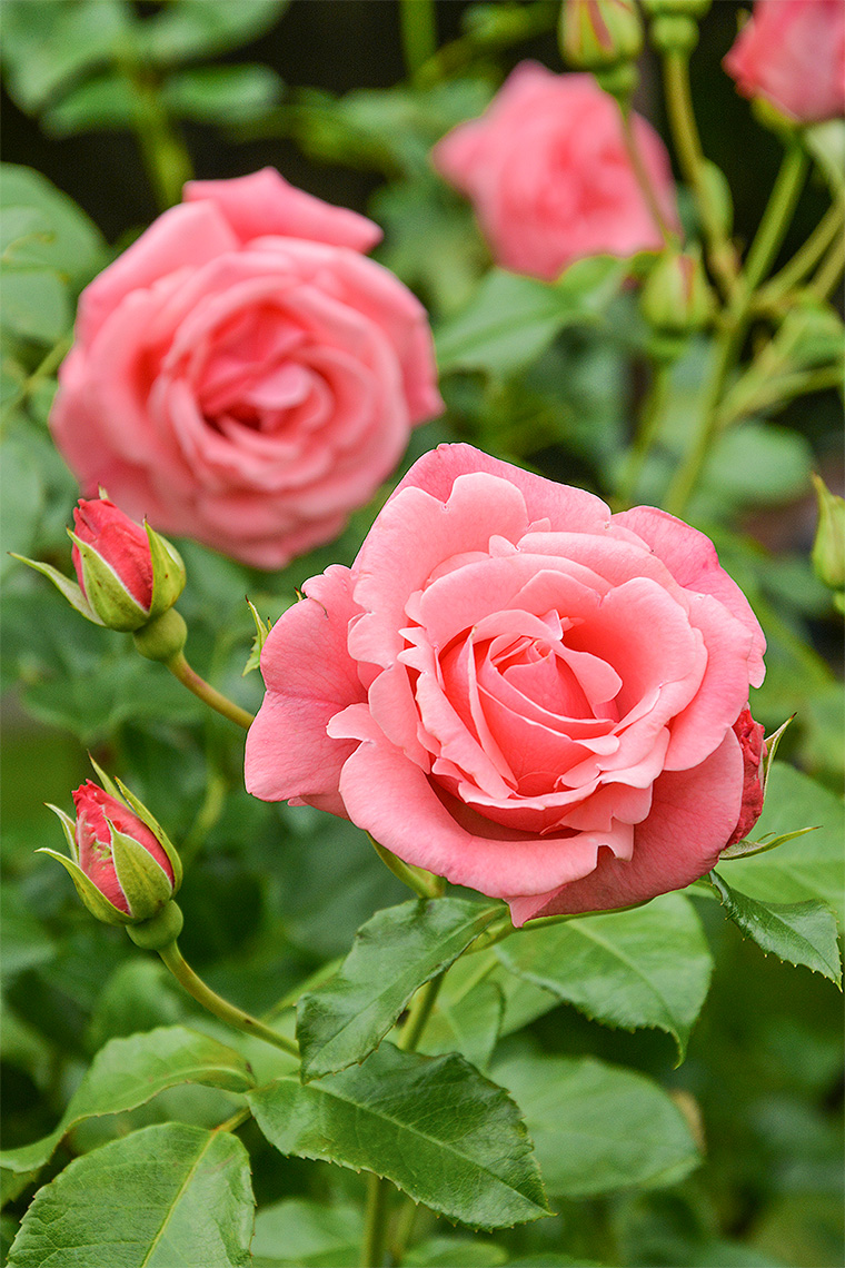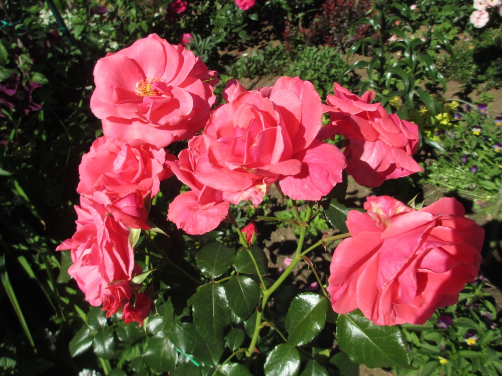 Най-неефективно е използването на рози в състав с астри, физостегии и растения, които за кратко време обхващат голяма площ на разпространение. На техния фон розовият храст губи своята индивидуалност. Допустимо е да експериментирате с други цветове, които не са включени в гореспоменатата група, създавайки ландшафтен дизайн.