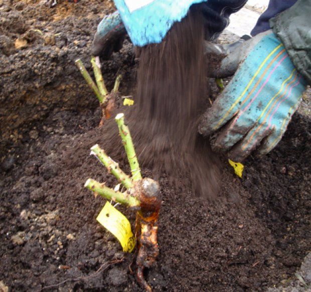 Преди засаждане трябва да накиснете корените в разтвор на вода и глина за десет минути. Първо се изкопава дупка, дълбока около 60 см и малко по-голяма от коренището. Такива размери са необходими, така че кореновата система да е просторно разположена в земята.