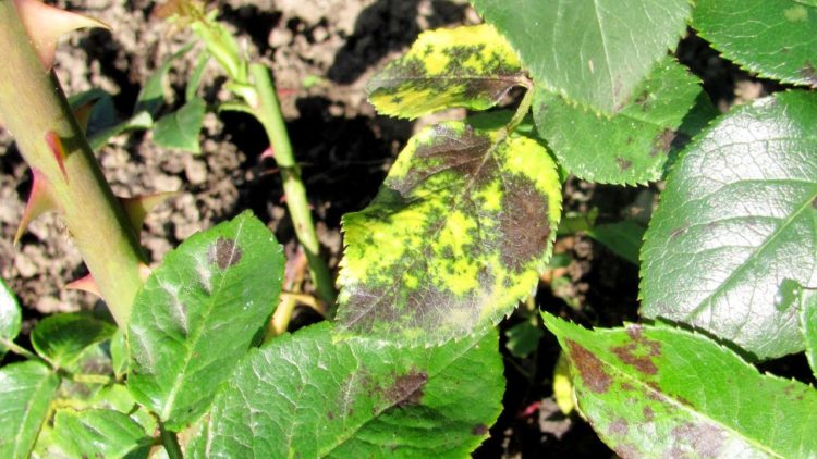 Черното петно е, когато по листата се появят черни и кафяви петна. Топлото и влажното време провокира, както и липсата на калий. Засегнатите части се отстраняват и изгарят. Растението се напръсква с течност от Бордо или емулсия от меден сапун.