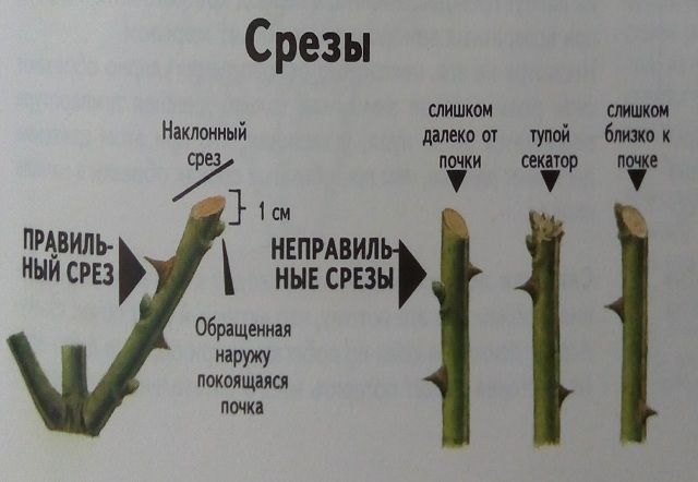 Най-горният разрез трябва да бъде на ниво 4-5 см от здрава пъпка, която е насочена от средата на храста. Наклоненият разрез ще предотврати задържането на влага и по този начин ще облекчи разпадането.