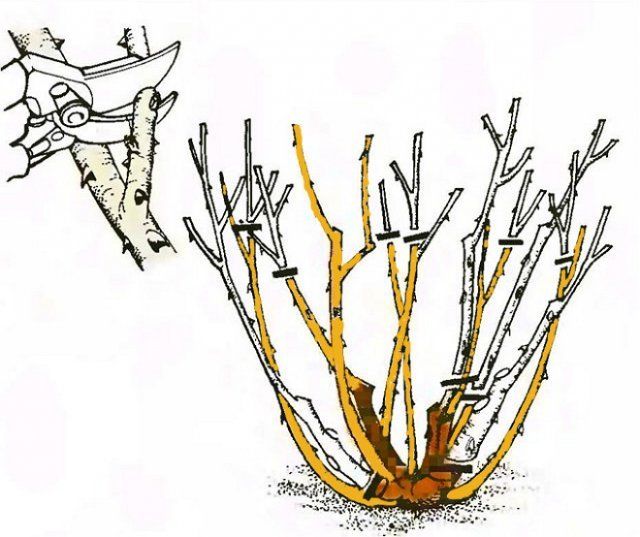 След 3-4 години живот храстите се нуждаят от подмладяваща резитба, когато най-старите и лигнифицирани клони се изрязват до кореновата шийка, стимулирайки растежа на заместващите издънки (базални). Правилната резитба ще запази розовия храст за дълго време декоративен.