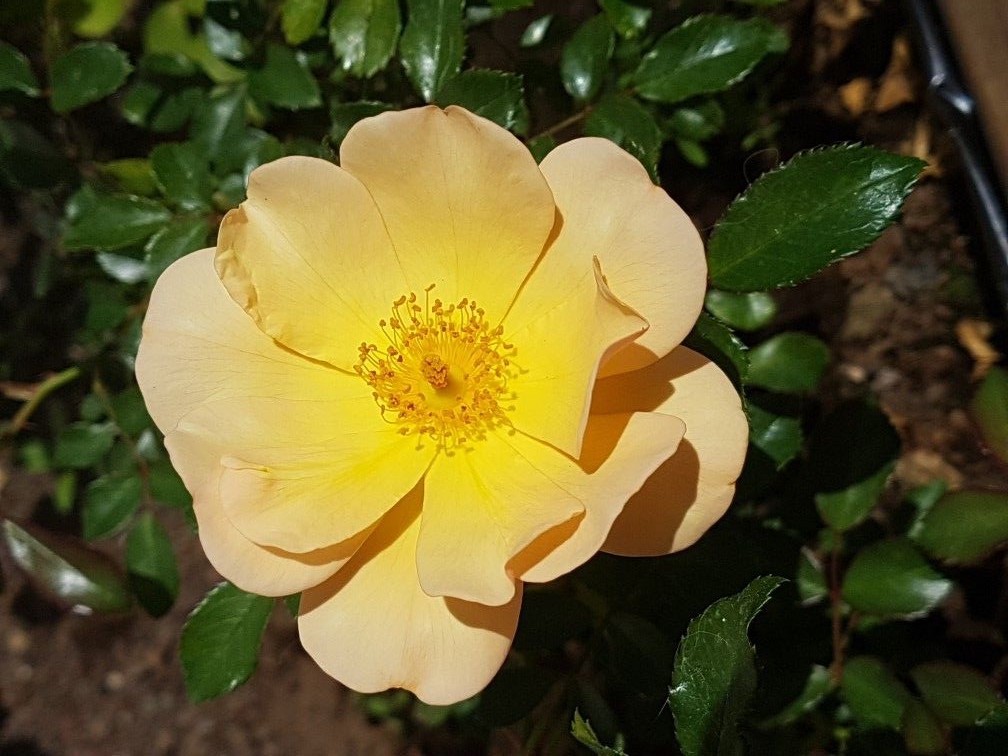 Цветята имат тъмно жълти венчелистчета и богат аромат. Бушът достига височина 180-200 см. Растението се нуждае от обилно поливане, подхранване, подрязване и покриване през зимата.