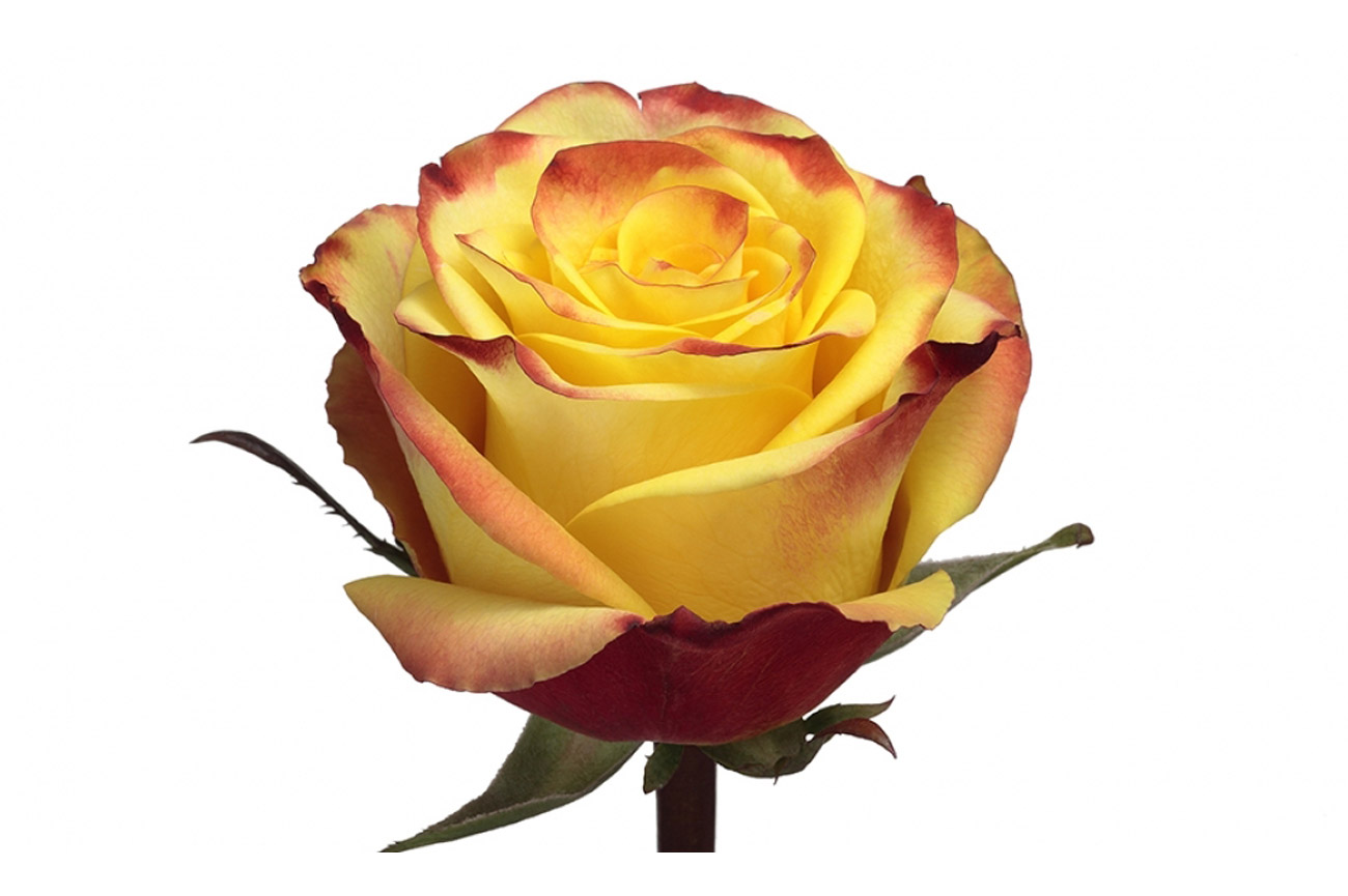 Цветята от този сорт изглеждат оцветени с четка на художник. Основата на буйната пъпка е жълта, външните венчелистчета и кантове имат яркочервени тонове.