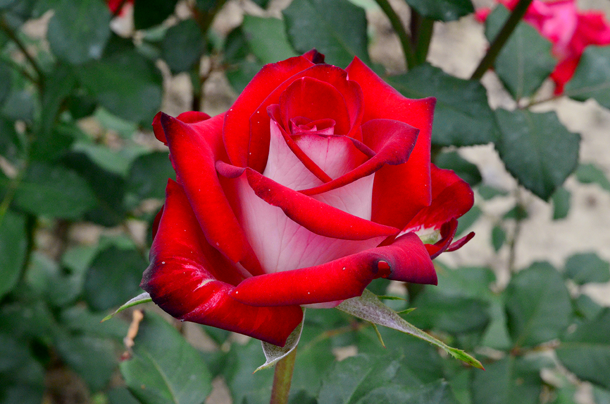 Най-яркият представител на хибридни чаени рози с алено оцветяване е сортът Osiria. Ароматните двуцветни пъпки са истинска перла на всеки букет и изискана градинска декорация.