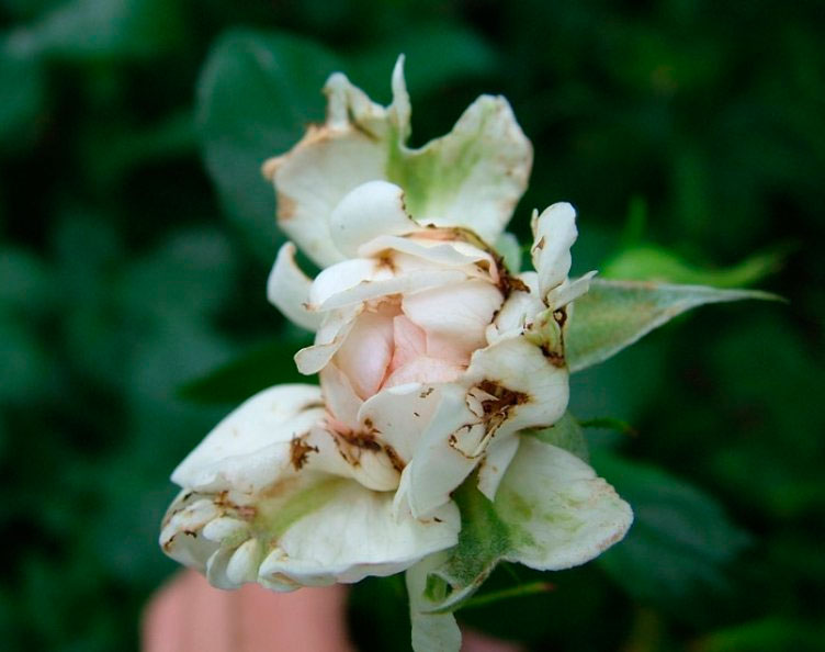 Светлите розови листенца на розата привличат трипси, те увреждат пъпките и отслабват растението. Вредителите могат да бъдат елиминирани чрез пръскане на пъпки и зеленина със системен инсектицид.