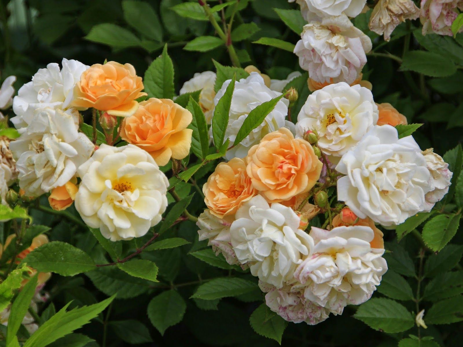 Покривните сортове включват голямо разнообразие от форми и цветове.Тази група включва стари повторно цъфтящи сортове и сортове Burgon, както и Fisherman Friend, Meijana, Cordesa, Tantus.
