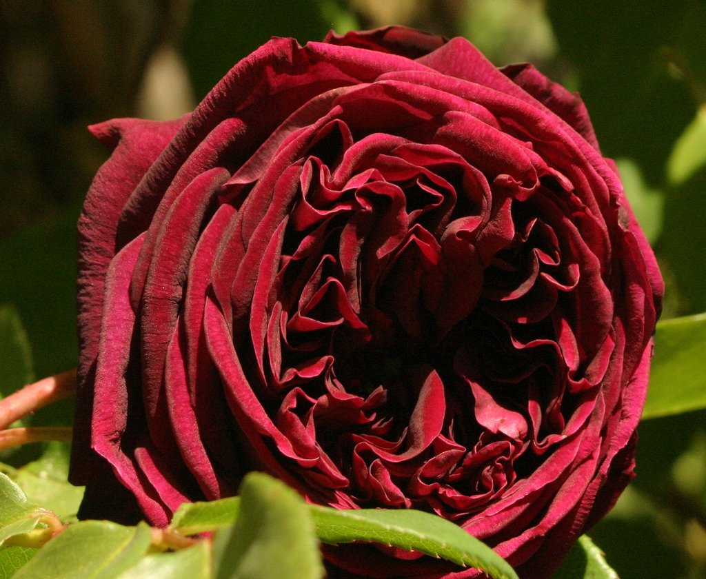 В началото на цъфтежа венчелистчетата са оцветени в тъмно червено, тъй като пъпката се отваря, тя става бордо, почти черна. Съцветията са малки, 7 см в диаметър, събрани на гроздове от 3-5 парчета. Тънки, силно извити издънки с дължина 60 см са покрити с бодли и светлозелени листа.
